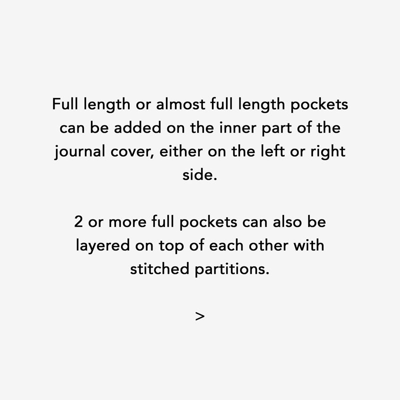 This is a space dedicated for references to how you can customise a leather journal for yourself! We have options for various sizes, pocket styles, additions like buttons, charms, personalisation that will help enhance the journal and make it truly yours!