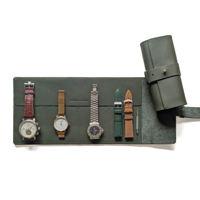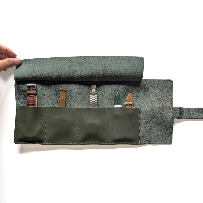 The roll features 4 slots that can be used for your watches, watch straps, or other watch accessories.