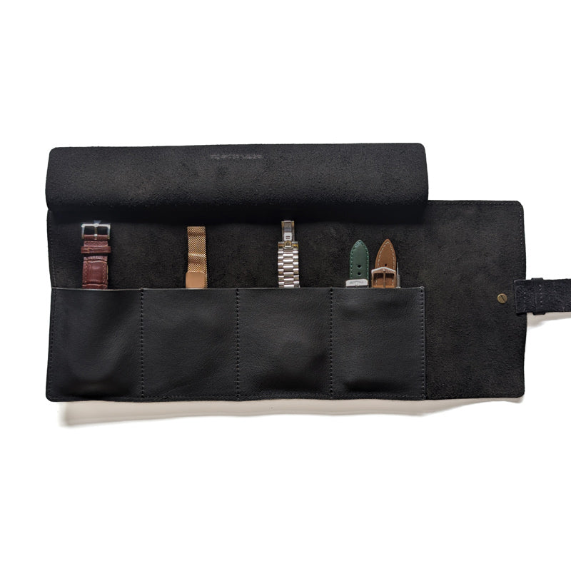 The roll features 4 slots that can be used for your watches, watch straps, or other watch accessories.