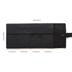 A flap over the pocket slots keeps your watches protected and once rolled up, an adjustable strap with a mushroom button closure can be used to keep it closed and secure.