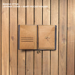 A Japanese journaling system for refillable leather journals which uses elastic bands to add notebook inserts, pocket folders and other journaling accessories.