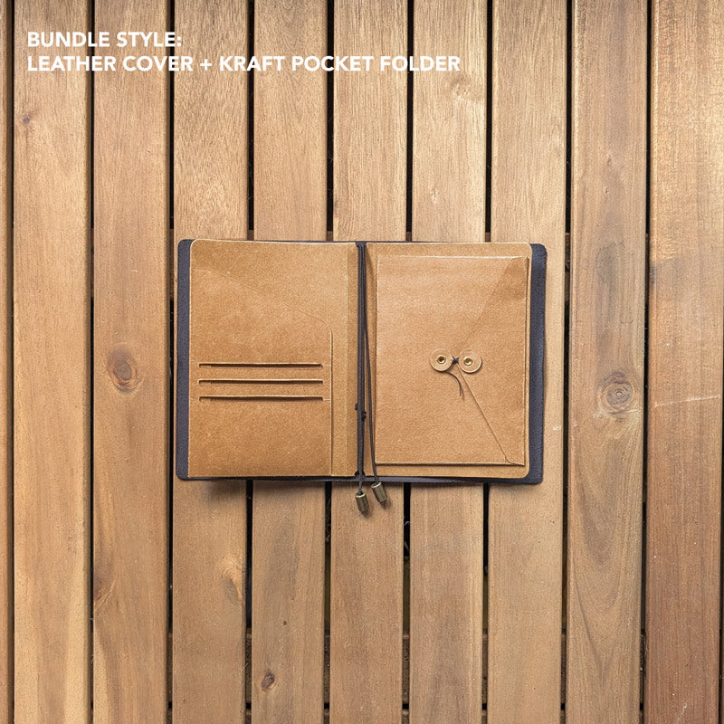 Cover + Kraft Folder: Cover with attached elastic bands + Kraft Pocket Folder + Cloth Drawstring Bag