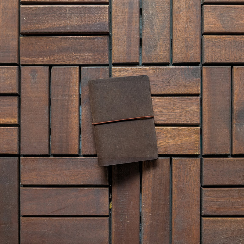 A Japanese journaling system for refillable leather journals which uses elastic bands to add notebook inserts, pocket folders and other journaling accessories.