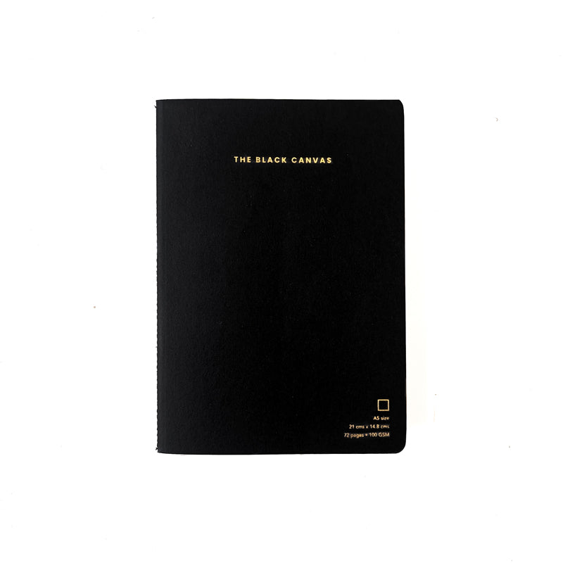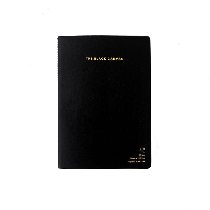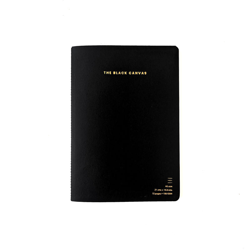 TBC Notebooks - A5 are the latest addition to our range of meticulously crafted notebooks. The standard A5-sized notebooks feature 72 pages of 100 GSM white eco-friendly paper, and rounded corners. The cover is crafted in black paper with black stitching on the spine and details debossed in gold foil.